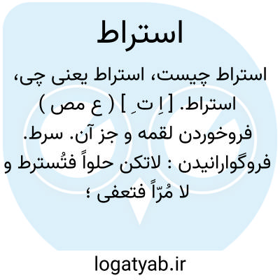 استراط. [ اِ ت ِ ] ( ع مص ) فروخوردن لقمه و جز آن. سرط. فروگوارانیدن: لاتکن حلواً فتُسترط و لا مُرّاً فتعفی؛ نه چندان شیرین باش که ترا فروبرند و نه چندان تلخ که بدور افکنند. ( منتهی الارب ).