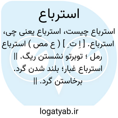 استرباع. [ اِ ت ِ ] ( ع مص ) استرباع رمل؛ توبرتو نشستن ریگ. || استرباع غبار؛ بلند شدن گرد. برخاستن گرد. || استرباع بعیر در سیر؛ قوی گردیدن آن در سیر. ( از منتهی الارب ).
