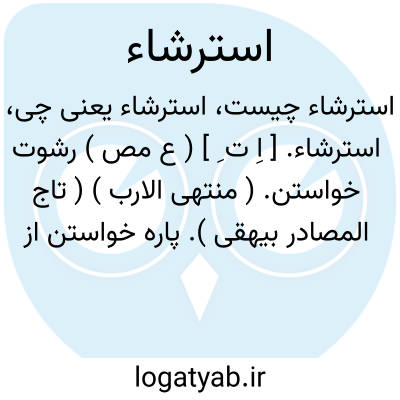لغت نامه دهخدا استرشاء. [ اِ ت ِ ] ( ع مص ) رشوت خواستن. ( منتهی الارب ) ( تاج المصادر بیهقی ). پاره خواستن از کسی. طلب رشوت کردن. رشوه گرفتن. || استرشاء فصیل؛ شیر جستن شتربچه. شیر خواستن اشتربچه. ( تاج المصادر بیهقی ). شیر خوردن خواستن بچه شتر. || اطاعت کسی کردن و خوشنودی او جستن. ( منتهی الارب ).