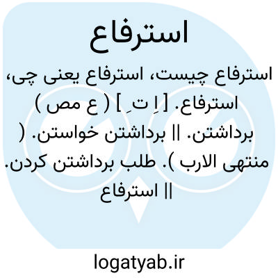 استرفاع. [ اِ ت ِ ] ( ع مص ) برداشتن. || برداشتن خواستن. ( منتهی الارب ). طلب برداشتن کردن. || استرفاع خوان؛ سپری شدن آنچه بر خوان بود و وقت برداشتن آن رسیدن. ( منتهی الارب ).