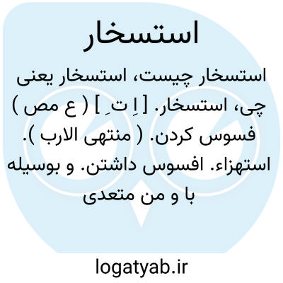 استسخار. [ اِ ت ِ ] ( ع مص ) فسوس کردن. ( منتهی الارب ). استهزاء. افسوس داشتن. و بوسیله با و من متعدی شود.