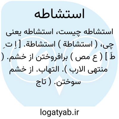 ( استشاطة ) استشاطة. [ اِ ت ِ طَ ] ( ع مص ) برافروختن از خشم. ( منتهی الارب ). التهاب. از خشم سوختن. ( تاج المصادر بیهقی ). || نیک خندیدن. || شادان پریدن کبوتر و مانند آن. || فربه شدن شتر. ( منتهی الارب ). فربه شدن اشتر. ( تاج المصادر بیهقی ). فربه شدن ستور. || سبک شدن برای کاری و زود برآمدن از آن. ( منتهی الارب ).