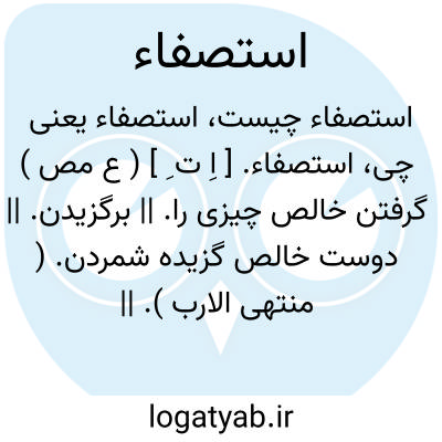استصفاء. [ اِ ت ِ ] ( ع مص ) گرفتن خالص چیزی را. || برگزیدن. || دوست خالص گزیده شمردن. ( منتهی الارب ). || استصفاء مال؛ کل مال کسی را گرفتن. ( منتهی الارب ). گرفتن همه مال او را. تمام مال ستاندن. همه مال فاستدن. ( تاج المصادر بیهقی ). || صافی کردن: قاآن، منگوقاآن و باتو و پادشاه زادگان دیگر را به استصفاء حدود ولایات... ( جهانگشای جوینی ).