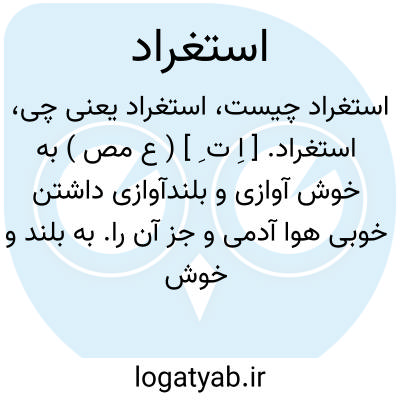 استغراد. [ اِ ت ِ ] ( ع مص ) به خوش آوازی و بلندآوازی داشتن خوبی هوا آدمی و جز آن را. به بلند و خوش آوازی آوردن: استغرد الروض الذباب؛ به بلند و خوش آوازی آورد مرغزار مگس را. ( منتهی الارب ).