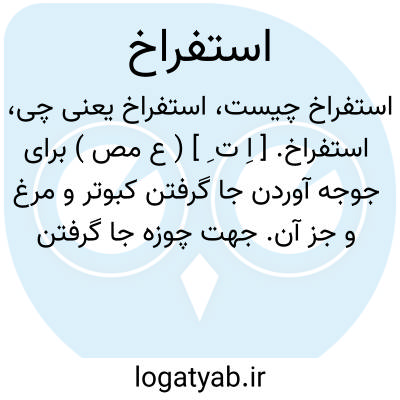 لغت نامه دهخدا استفراخ. [ اِ ت ِ ] ( ع مص ) برای جوجه آوردن جا گرفتن کبوتر و مرغ و جز آن. جهت چوزه جا گرفتن کبوتر و جز آن. ( منتهی الارب ). || فراگرفتن کبوتر ازبهر بچه. ( تاج المصادر بیهقی ). مرغ داشتن برای بچه کردن. جهت چوزه بیرون آوردن، داشتن. ( منتهی الارب ).