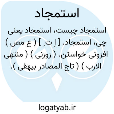 استمجاد. [ اِ ت ِ ] ( ع مص ) افزونی خواستن. ( زوزنی ) ( منتهی الارب ) ( تاج المصادر بیهقی ). استکثار. افزونی گرفتن. ( تاج المصادر بیهقی ). و منه المثل: فی کل شجر نار، و استمجد المرخ و العفار؛ ای استکثرا منها کأنهما اخذا من النار ما هو حسبهما. ( منتهی الارب ). || بزرگی و افزونی کردن خواستن. بزرگی گرفتن. افزونی گرفتن خواستن. || قوی شدن بعد از ضعف. ( تاج المصادر بیهقی ). || دلیر شدن بر کسی پس از شکوه ( ؟ ). ( تاج المصادر بیهقی ). || دارای صفاتی از کرم و جز آن بودن.