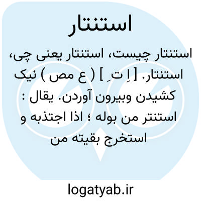 استنتار. [ اِ ت ِ ] ( ع مص ) نیک کشیدن وبیرون آوردن. یقال: استنتر من بوله؛ اذا اجتذبه و استخرج بقیته من الذکر عند الاستنجاء. ( منتهی الارب ).