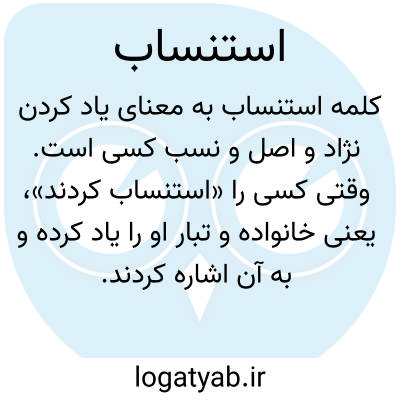 کلمه استنساب به معنای یاد کردن نژاد و اصل و نسب کسی است. وقتی کسی را «استنساب کردند»، یعنی خانواده و تبار او را یاد کرده و به آن اشاره کردند. این واژه بیشتر در متون تاریخی و ادبی برای معرفی افراد و شناسایی خانواده‌هایشان به کار می‌رود.