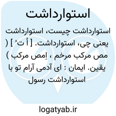 استوارداشت. [ اُ ت ُ ] ( مص مرکب مرخم، اِمص مرکب ) یقین. ایمان: ای آدمی آرام تو با استوارداشت رسول است علیه السلام بدانچه از خداوند عزّ و جل آورده است. ( کتاب المعارف ). رجوع به ترکیب استوار داشتن ذیل استوار شود.