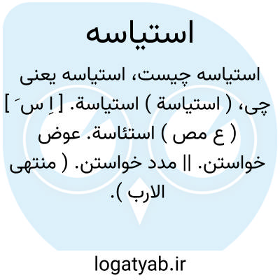 ( استیاسة ) استیاسة. [ اِ س َ ] ( ع مص ) استئاسة. عوض خواستن. || مدد خواستن. ( منتهی الارب ).
