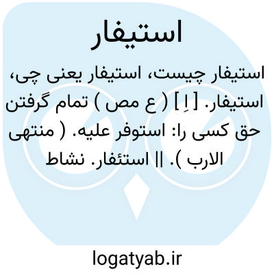 استیفار. [ اِ ] ( ع مص ) تمام گرفتن حق کسی را: استوفر علیه. ( منتهی الارب ). || استئفار. نشاط کردن شتر و فربه شدن پس از مشقت و لاغری.