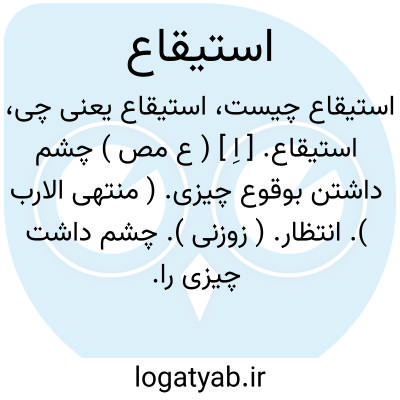 استیقاع. [ اِ ] ( ع مص ) چشم داشتن بوقوع چیزی. ( منتهی الارب ). انتظار. ( زوزنی ). چشم داشت چیزی را. || ترسیدن. ( منتهی الارب ). || هنگام تیز کردن رسیدن شمشیر را. ( منتهی الارب ).