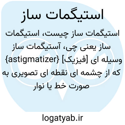 فرهنگستان زبان و ادب آستیگمات ساز{astigmatizer} [فیزیک] وسیله ای که از چشمه ای نقطه ای تصویری به صورت خط یا نوار تشکیل می دهد