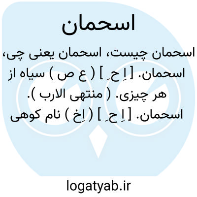 لغت نامه دهخدا اسحمان. [ اِ ح ِ ] ( ع ص ) سیاه از هر چیزی. ( منتهی الارب ).اسحمان. [ اِ ح ِ ] ( اِخ ) نام کوهی است. ( مهذب الاسماء ) ( منتهی الارب ) ( مراصد الاطلاع ).اسحمان. [ اُ ح ُ ] ( ع اِ ) درختی است. ( منتهی الارب ).