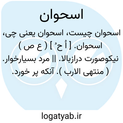 اسحوان. [ اُ ح ُ ] ( ع ص ) نیکوصورت درازبالا. || مرد بسیارخوار. ( منتهی الارب ). آنکه پر خورد.