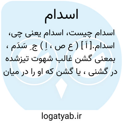 اسدام.[ اَ ] ( ع ص، اِ ) ج ِ سَدَم، بمعنی گشن غالب شهوت تیزشده در گشنی، یا گشن که او را در میان شتران گذارند پس آن بانگ کند در میان آنها و شترمادگان آزمند فحل شوند، آن گشن را از میان آنها برآرند و این از جهت بد داشتن نسل اوست یا گشن بسته دهن یا بازداشته شده از گشنی بهر وجه که باشد. ( منتهی الارب ). || ج ِ سُدم و سُدُم، بمعنی چاه انباشته. ( منتهی الارب ).
