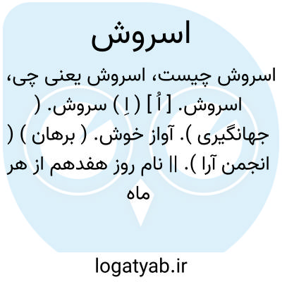 اسروش. [ اُ ] ( اِ ) سروش. ( جهانگیری ). آواز خوش. ( برهان ) ( انجمن آرا ). || نام روز هفدهم از هر ماه شمسی. ( برهان ). || فرشته را نیز گویند مطلقاً. ( برهان ). ملائکه عموماً. ( رشیدی ). ملک. فریشته. || هاتف غیب. ( رشیدی ). || ( اِخ ) جبرائیل. ( رشیدی ). || نام فرشته ای است که تدبیر امور بندگان بدست اوست. ( برهان ). رجوع به سروش شود.