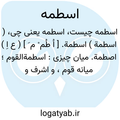 ( اسطمة ) اسطمة. [ اُ طُم ْ م َ ] ( ع اِ ) اصطمة. میان چیزی: اسطمةالقوم؛ میانه قوم، و اشرف و بهتر ایشان. || فراهم آمدنگاه مردمان و معتمدعلیه ایشان. ( منتهی الارب ). || میانه دریا. اسطم.
