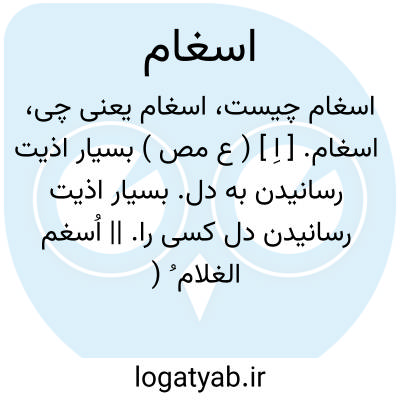 اسغام. [ اِ ] ( ع مص ) بسیار اذیت رسانیدن به دل. بسیار اذیت رسانیدن دل کسی را. || اُسغم الغلام ُ ( مجهولاً )؛ ای سُغم َ؛ فربه و بنازپرورده گردید. ( از منتهی الارب ).