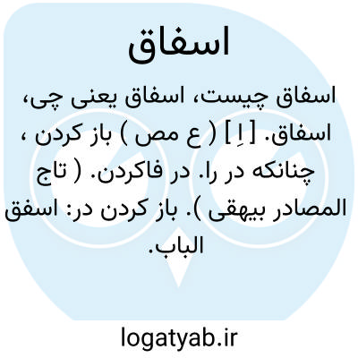 اسفاق. [ اِ ] ( ع مص ) باز کردن، چنانکه در را. در فاکردن. ( تاج المصادر بیهقی ). باز کردن در: اسفق الباب. ( منتهی الارب ).