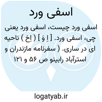 اسفی ورد. [ اِ وَ ] ( اِخ ) ناحیه ای در ساری. ( سفرنامه مازندران و استرآباد رابینو ص 56 و 121 بخش انگلیسی ). رجوع به اسفیورد شورآب شود.
