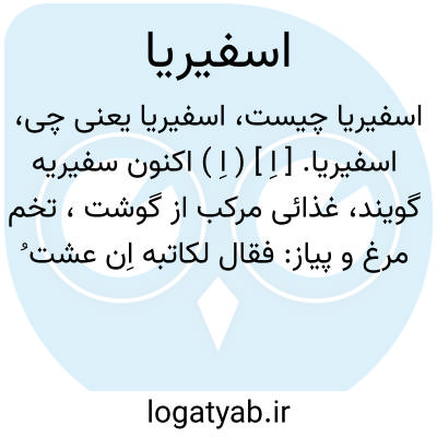 اسفیریا. [ اِ ] ( اِ ) اکنون سفیریه گویند، غذائی مرکب از گوشت، تخم مرغ و پیاز: فقال لکاتبه اِن عشت ُ قلیلاً لاطعمنک اسفیریا من لحوم هذه الجزر مااکلت مثلها قط. ( ابن القوطیه نسخه خطی پاریس شماره 706 از دزی ج 1 ص 22 ).