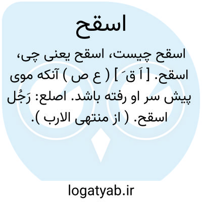 اسقح. [ اَ ق َ ] ( ع ص ) آنکه موی پیش سر او رفته باشد. اصلع: رَجُل اسقح. ( از منتهی الارب ).