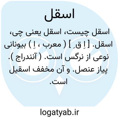 اسقل. [ اِ ق ِ ] ( معرب، اِ ) بیونانی نوعی از نرگس است. ( آنندراج ). پیاز عنصل. و آن مخفف اسقیل است. رجوع به اِسقیل شود.