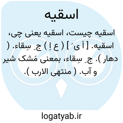 اسقیه. [ اَ ی َ ] ( ع اِ ) ج ِ سِقاء. ( دهار ). ج ِ سِقاء، بمعنی مَشک شیر و آب. ( منتهی الارب ). || ج ِ سقی، بمعنی آب خورده و سیراب و کشت آب پاشیده و مانند آن. ( منتهی الارب ). || نصیب های آب. || ج ِ سقی، بمعنی ابر بزرگ قطره. ( منتهی الارب ). ابرهای باباران.