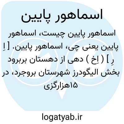 اسماهور پایین. [ اِ رِ ] ( اِخ ) دهی از دهستان بربرود بخش الیگودرز شهرستان بروجرد، در 15هزارگزی جنوب خاوری الیگودرز، کنار راه مالرو دره سفید. جلگه، معتدل. سکنه 469 تن. شیعه. لری و فارسی. آب آن از قنات و چاه. محصول آنجا غلات، تریاک، لبنیات. شغل اهالی زراعت و گله داری. صنایع دستی زنان قالی بافی. راه آن مالرو است. ( فرهنگ جغرافیایی ایران ج 6 ).