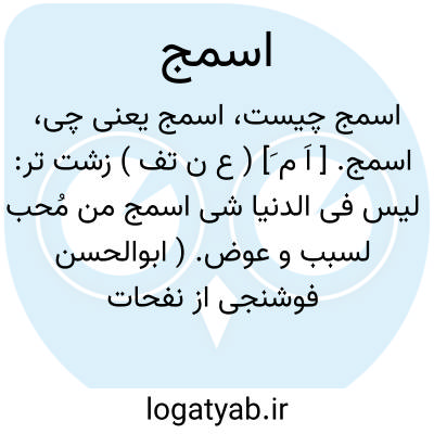 اسمج. [ اَ م َ] ( ع ن تف ) زشت تر: لیس فی الدنیا شی اسمج من مُحب لسبب و عوض. ( ابوالحسن فوشنجی از نفحات الانس جامی ).