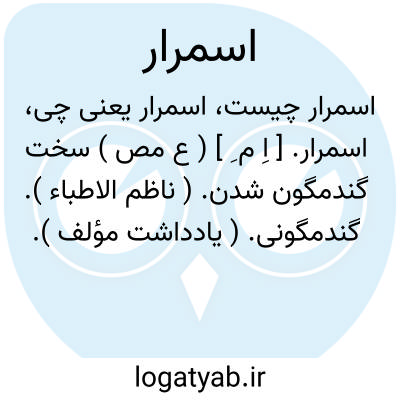 لغت نامه دهخدا اسمرار. [ اِ م ِ ] ( ع مص ) سخت گندمگون شدن. ( ناظم الاطباء ). گندمگونی. ( یادداشت مؤلف ).