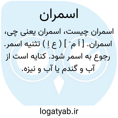 اسمران. [ اَ م َ ] ( ع اِ ) تثنیه اسمر. رجوع به اسمر شود. کنایه است از آب و گندم یا آب و نیزه. ( از اقرب الموارد ).