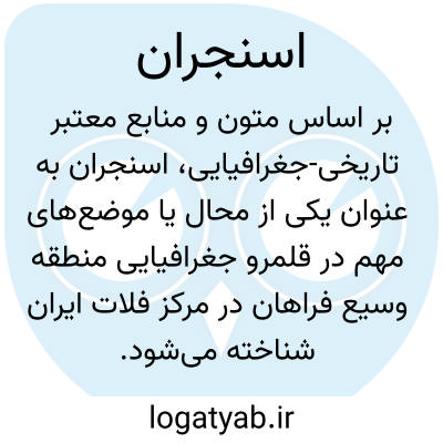 بر اساس متون و منابع معتبر تاریخی-جغرافیایی، اسنجران به عنوان یکی از محال یا موضعهای مهم در قلمرو جغرافیایی منطقه وسیع فراهان در مرکز فلات ایران شناخته میشود. فراهان، منطقهای با اهمیت تاریخی و استراتژیک، همواره محلی برای استقرار سکونتگاههای متعدد بوده است و اسنجران در تقسیمات اداری آن دوران، بخشی از ساختار منطقهای این ناحیه محسوب میگردیده است. ارجاع مستقیم به این محل در منابع کهن، نشاندهنده اهمیت محلی و ثبت آن در نقشههای تاریخی آن دوره است.