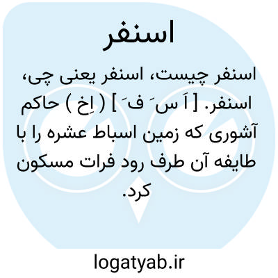 اسنفر. [ اَ س َ ف َ ] ( اِخ ) حاکم آشوری که زمین اسباط عشره را با طایفه آن طرف رود فرات مسکون کرد. ( کتاب دوم پادشاهان 17: 24 ). و در کتاب عزرا ( 4:10 ) مکتوب است که مردی شریف بود. ( قاموس کتاب مقدس ص 64 ).