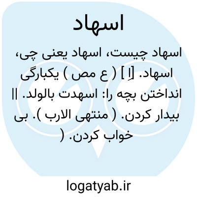 اسهاد. [اِ ] ( ع مص ) یکبارگی انداختن بچه را: اسهدت بالولد. || بیدار کردن. ( منتهی الارب ). بی خواب کردن. ( تاج المصادر بیهقی ) ( زوزنی ). بی خواب گردانیدن.