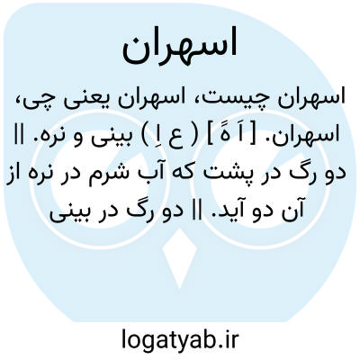 اسهران. [ اَ هََ ] ( ع اِ ) بینی و نره. || دو رگ در پشت که آب شرم در نره از آن دو آید. || دو رگ در بینی ستور یا عام است. دو رگ است در درون بینی. دو رگ اند در سوراخ بینی. || دو رگ در چشم. || دو رگ که از انثیین بالا رود و نزدیک باطن نره مجتمع شود. ( منتهی الارب ).