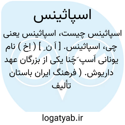 اسپاثینس. [ اَ ن ِ ] ( اِخ ) نام یونانی اَسپ َچَنا یکی از بزرگان عهد داریوش. ( فرهنگ ایران باستان تألیف پورداود ج 1 ص 228 ) ( ایران باستان ص 535 ).