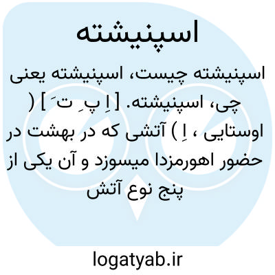اسپنیشته. [ اِ پ ِ ت َ ] ( اوستایی، اِ ) آتشی که در بهشت در حضور اهورمزدا میسوزد و آن یکی از پنج نوع آتش است که در یسنای II و IV مذکور است و در تفسیر پهلوی آنها نیز مندرج است و در کتاب بندهش هم اسامی این آتشها با تحریفی آمده است. ( ایران در زمان ساسانیان تألیف کریستنسن ترجمه یاسمی صص 91 - 92 ).