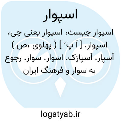 اسپوار. [ اَ پ َ ] ( پهلوی،ص ) اَسپار. اَسپارَک. اسوار. سوار. رجوع به سوار و فرهنگ ایران باستان تألیف پورداود ج 1 ص 223 شود.