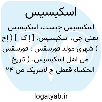 لغت نامه دهخدا اسکبسیس. [ اِ ک ِ ] ( اِخ ) شهری مولد قورسقس: قورسقس من اهل اسکبسیس. ( تاریخ الحکماء قفطی چ لایبزیک ص 24 ).