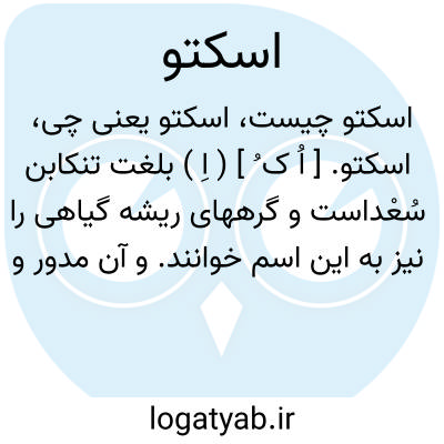 اسکتو. [ اُ ک ُ ] ( اِ ) بلغت تنکابن سُعْداست و گرههای ریشه گیاهی را نیز به این اسم خوانند. و آن مدور و بسیار لذیذ و شیرین و بقدر نخودی میباشد و برگش باریکتر از برگ کراث است و زیاده بر سه عدد نمی باشد و بی ثمر و بی گل و در ریگزارهای حریم آبها میروید. ( تحفه حکیم مؤمن ). و رجوع به سُعْد شود.