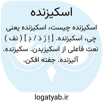 لغت نامه دهخدا اسکیزنده. [ اِ زَ دَ / دِ ] ( نف ) نعت فاعلی از اسکیزیدن. سکیزنده. آلیزنده. جفته افکن.
