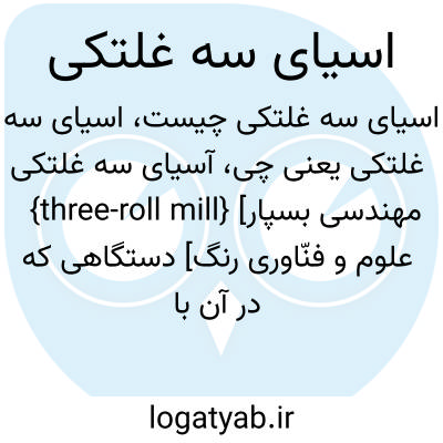 {three-roll mill} [مهندسی بسپار علوم و فنّاورى رنگ] دستگاهی که در آن با عبور آس مایه از میان سه غلتک با سرعت چرخش متفاوت، رنگ دانه ها پراکنده می شوند