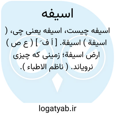 لغت نامه دهخدا ( اسیفة ) اسیفة. [ اَ ف َ ] ( ع ص ) ارض اسیفة؛ زمینی که چیزی نرویاند. ( ناظم الاطباء ).