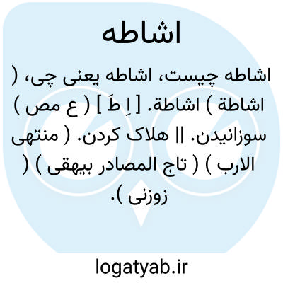 ( اشاطة ) اشاطة. [ اِ طَ ] ( ع مص ) سوزانیدن. || هلاک کردن. ( منتهی الارب ) ( تاج المصادر بیهقی ) ( زوزنی ). || باطل و تباه ساختن. || جدا کردن گوشت را. || پراکنده کردن. ( منتهی الارب ). || بهلاک افکندن. فرا کشتن دادن. ( تاج المصادر بیهقی ). || بکشتن پیش آوردن کسی را: اشاط دمه وبدمه؛ ای اذهبه او عمل فی هلاکه او عرضه للقتل. ( منتهی الارب ). || کشتن شتر قمار را. || صاحب سهم پسین شدن از شتر قمار. ( منتهی الارب ).