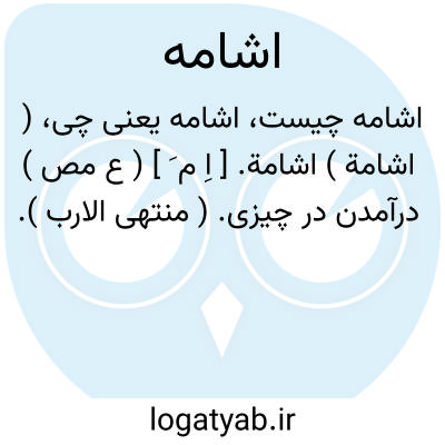 ( اشامة ) اشامة. [ اِ م َ ] ( ع مص ) درآمدن در چیزی. ( منتهی الارب ).