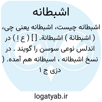 ( اشبطانة ) اشبطانة. [ ] ( ع اِ ) در اندلس نوعی سوسن را گویند. در نسخ اشبطانه، اسبطانه هم آمده. ( دزی ج 1 ص 24 ).