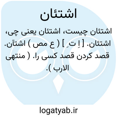 اشتئان. [ اِ ت ِ ] ( ع مص ) اشتآن. قصد کردن قصد کسی را. ( منتهی الارب ).