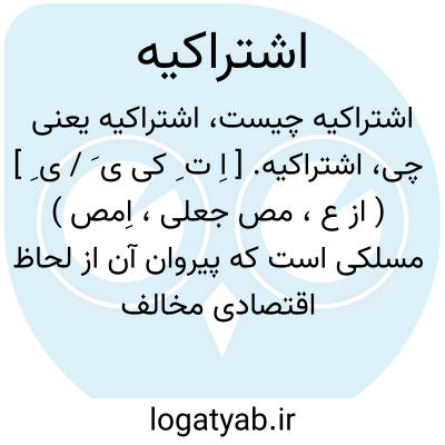 اشتراکیه. [ اِ ت ِ کی ی َ / ی ِ ] ( از ع، مص جعلی، اِمص ) مسلکی است که پیروان آن از لحاظ اقتصادی مخالف مالکیت فردی هستند و به گروههای گوناگون و مکاتب مختلف تقسیم میشوند. دسته ای را که برای رسیدن به هدف خود به انقلاب دست می یازند، کمونیست مینامند و گروهی که مبارزات پارلمانی را وسیله وصول بدین مقصد میسازند، سوسیالیست نامیده میشوند. بطور کلی پیروان این مسلک معتقدند ابزار تولید باید به اجتماع تعلق گیرد و هر کس به اندازه کار خود از زندگی بهره مند شود. یکی از پایه گذاران این مسلک کارل مارکس بوده است. رجوع به اشتراکی و سوسیالیسم و کمونیزم شود.